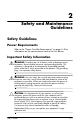 2 Safety and Maintenance Guidelines Safety Guidelines Power Requirements Refer to the “Power Cord Set Requirements” on page C–4 for information on the correct power cord set for this device. Important Safety Information Å WARNING: To reduce the risk of electric shock or damage to your equipment, do not disable the power cord grounding feature. This equipment is designed to be connected to a grounded (earthed) power outlet that is easily accessible to the operator.