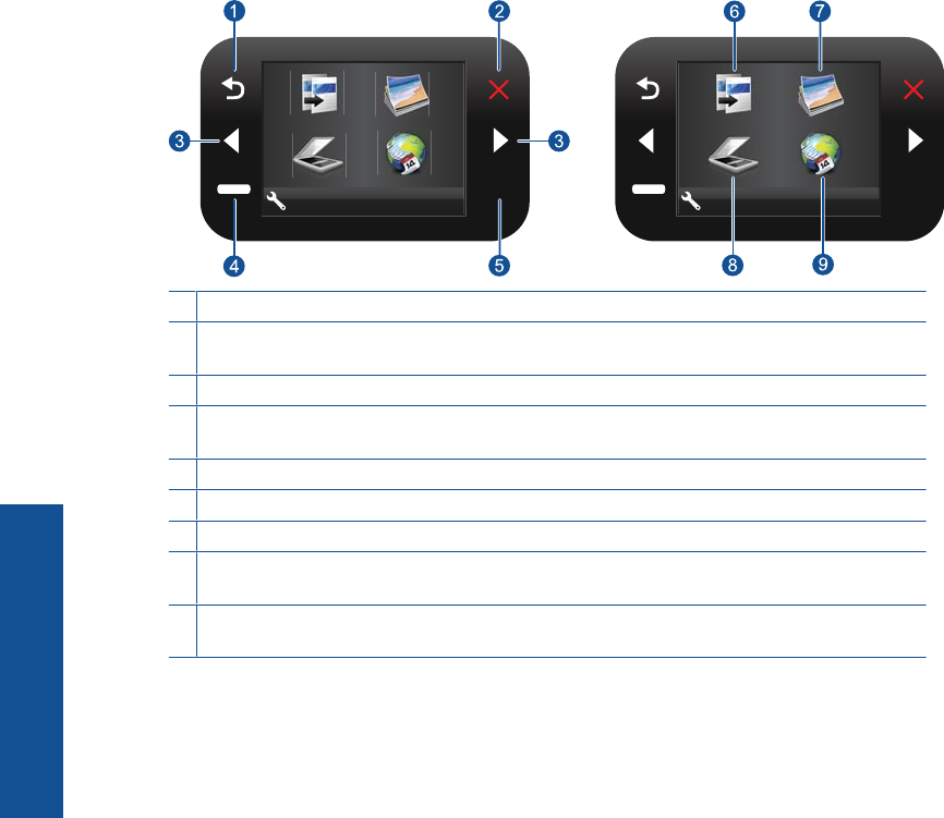 2 Cancel: Stops the current operation, restores default settings, and clears the current photo