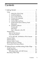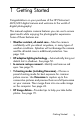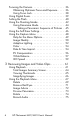 Contents 1 Getting Started . . . . . . . . . . . . . . . . . . . . . . . 9 Setup 1 2 3 4 5 6 7 ............................... Attach the Wrist Strap . . . . . . . . . . . . . . Install the Batteries . . . . . . . . . . . . . . . . . Turn on the Camera . . . . . . . . . . . . . . . . Choose the Language. . . . . . . . . . . . . . . Set the Region . . . . . . . . . . . . . . . . . . . . Set the Date and Time . . . . . . . . . . . . . . Install and Format a Memory Card (Optional) . . . . . . . . . . . . . .