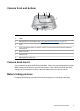 Camera front and bottom 1 2 3 4 5 8 7 6 1 Microphone. 2 Flash. 3 Self-Timer/Focus Assist light—See “Using the Self-Timer settings” on page 20. 4 Lens. 5 Lens cover/Power switch—Turns the camera on and off and protects the lens while the camera is off. 6 Dock connector. 7 Tripod mount. 8 Battery/Memory Card door. Camera dock insert If you purchase an optional HP Photosmart dock, it will come with multiple plastic inserts.