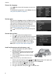 Chapter 1 Choose the language Use press to choose the language you want, then . To change the language later, use the Setup menu (see Using the Setup Menu on page 41). Set the region Along with the Language setting, the Region setting determines the default date format and the format of the video signal for displaying camera images on a television when connected through an optional HP Photosmart Premium dock or wireless dock base (see Using the Setup Menu on page 41). Use .