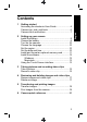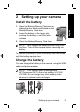 1 Getting started Accessing the electronic User Guide.......................4 Camera top, side, and back ....................................6 Camera front and bottom.........................................7 2 Setting up your camera Install the battery......................................................9 Charge the battery....................................................9 Turn on the camera................................................10 Choose the language........................................
