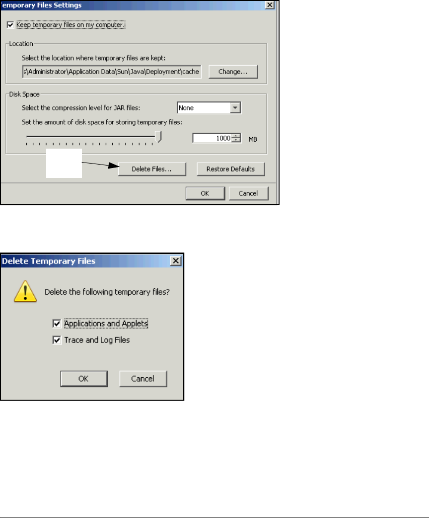 Figure 7. Delete Temporary Files (Java Control Panel)