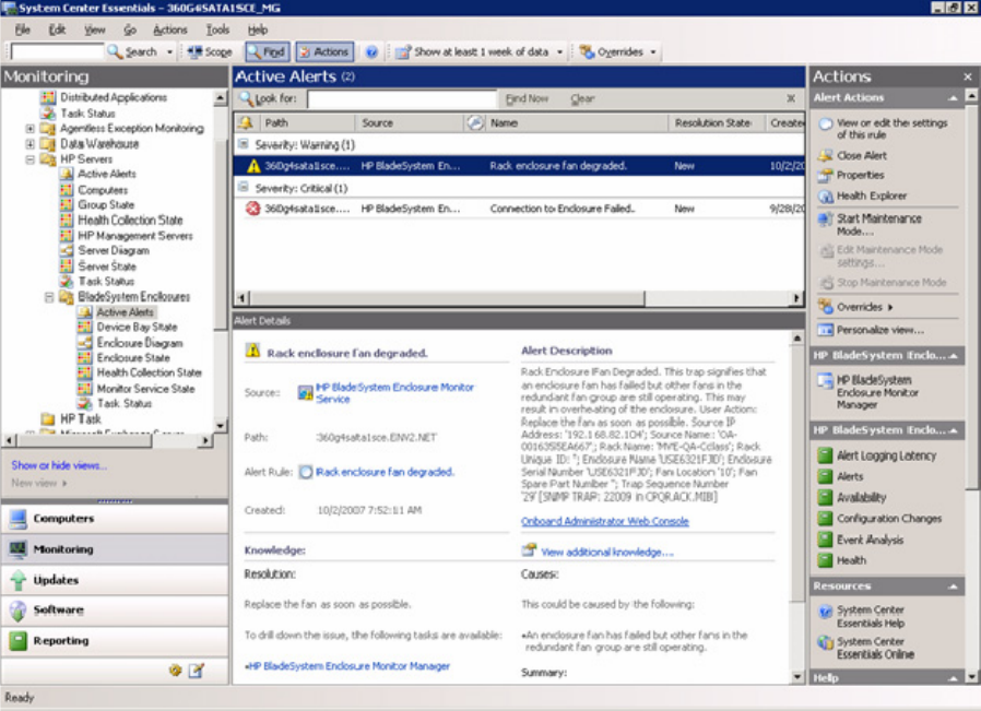 - HP BladeSystem Management Pack for Microsoft® System Center Essentials 2007 User Guide