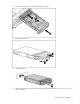 4. Install hard drive 2, and then lift hard drive carrier 1 into position in the hard drive tray.