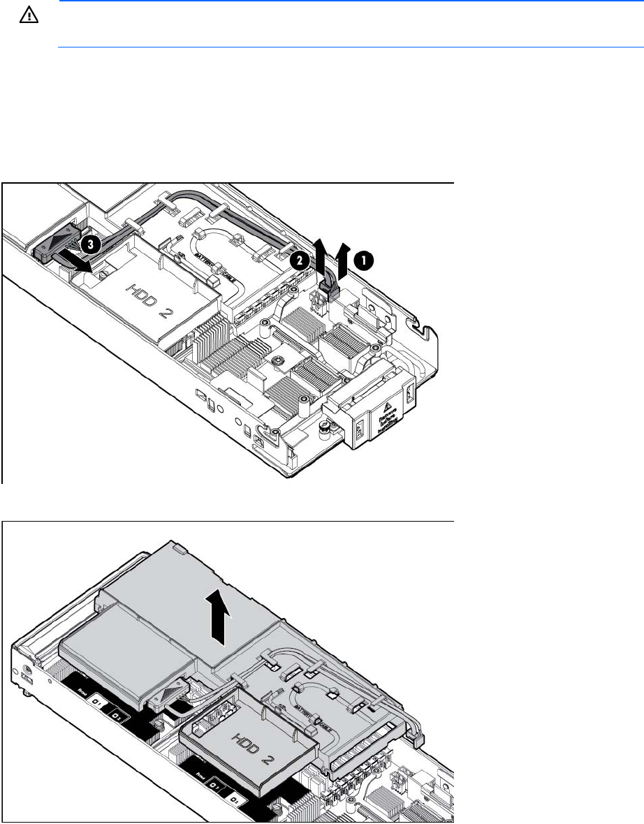 5. Remove the DIMM baffle with the hard drives and cables in place.