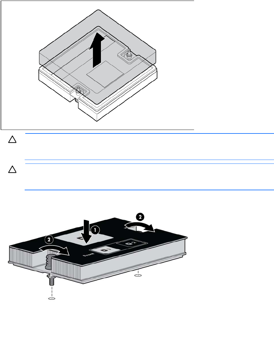 heatsink labels. The heatsinks are not interchangeable between processor 1 and processor 2