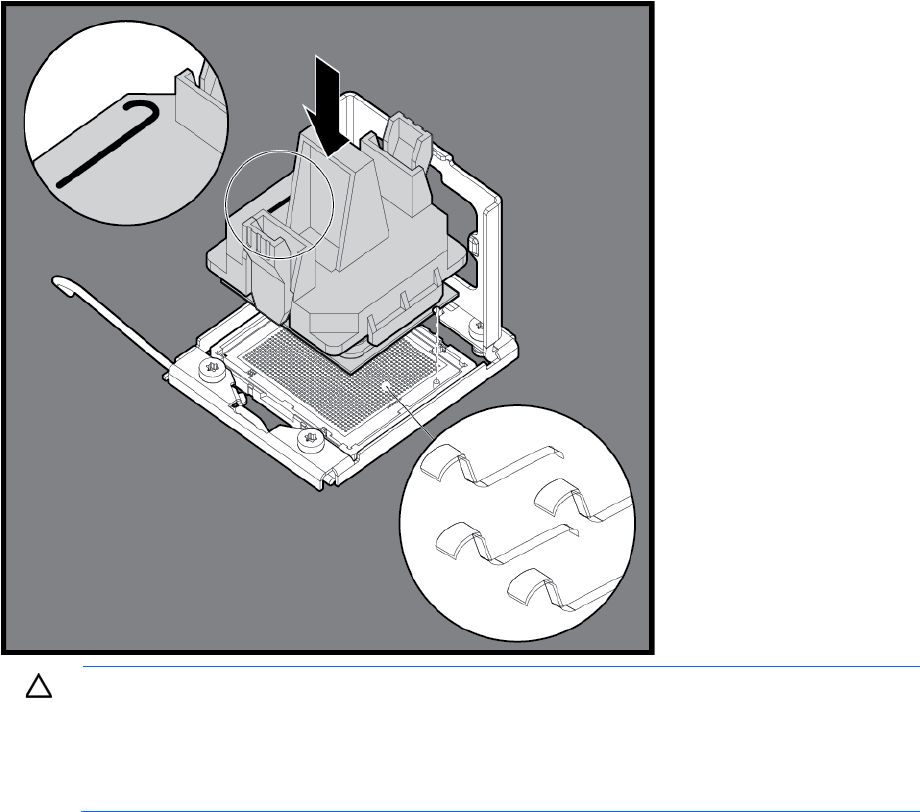 Be sure the tool is oriented correctly. Align the processor installation tool with the socket, and then install