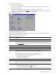 Advanced menu Figure 5 Setup Advanced menu Table 5 Advanced menu fields Field Description Options Reset Configuration Data Select whether to erase data in the section of memory for ESCD (Extended System Configuration Data) which stores the configuration settings for non-PnP plug-in devices. Yes No NIC Option Select which LAN port to use for console redirection. Dedicated NIC Side-band NIC 8042 Emulation Support Select whether to enable emulation support for the 8042 keyboard controller.