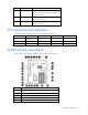 System board LEDs Item LED description Status 1 Fan 6 failure (reserved) — 2 Power supply Off = No AC power or failed power supply Green = Power supply is on and functioning. 3 Overtemperature Amber = System has reached a cautionary or critical temperature level. Off = Normal 4 Fan 1 failure Amber = Fan has failed or is missing. Off = Normal 5 Fan 2 failure Amber = Fan has failed or is missing. Off = Normal 6 DIMM failure (1-9) Amber = DIMM has failed or is missing.