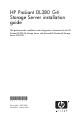 HP ProLiant DL380 G4 Storage Server installation guide This guide provides installation and configuration information for the HP ProLiant DL380 G4 Storage Server with Microsoft® Windows® Storage Server 2003 R2.