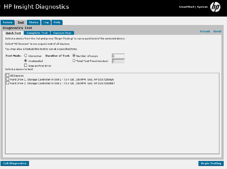 - Starting HP Insight Diagnostics for Linux Online Edition from the HP System Management Homepage