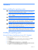 Installation Before installing the operating system IMPORTANT: Before powering up the server and configuring the operating system software, connect the server hardware as described in the server user guide. Do not install additional hardware devices until after the software installation is complete. IMPORTANT: After the installation of the operating system, if prompted for HP driver files, enter the path C:\Drivers. Driver files are located in subdirectories in this path.