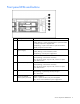 SAS backplane components Item Description 1 Power button/LED connector 2 DVD/CD-ROM drive connector 3 DVD/CD-ROM drive system connector 4 SAS connector 5 Diskette drive system connector 6 Diskette drive connector 7 SAS connector 8 Power connector 9 USB connector System board LEDs Server component identification 16