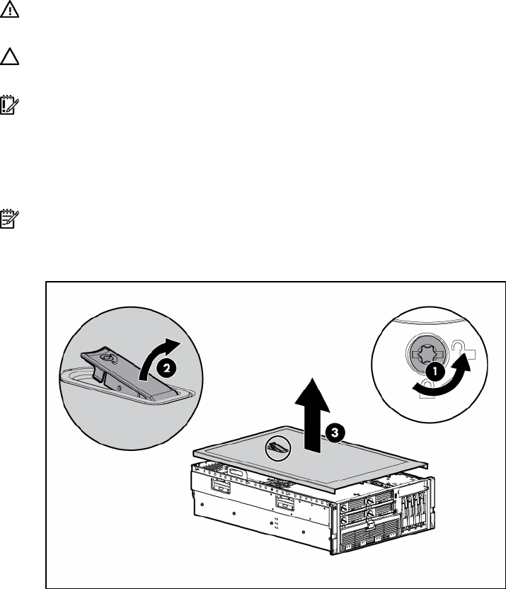 CAUTION: Do not operate the server for long periods with the access panel open or removed. Operating