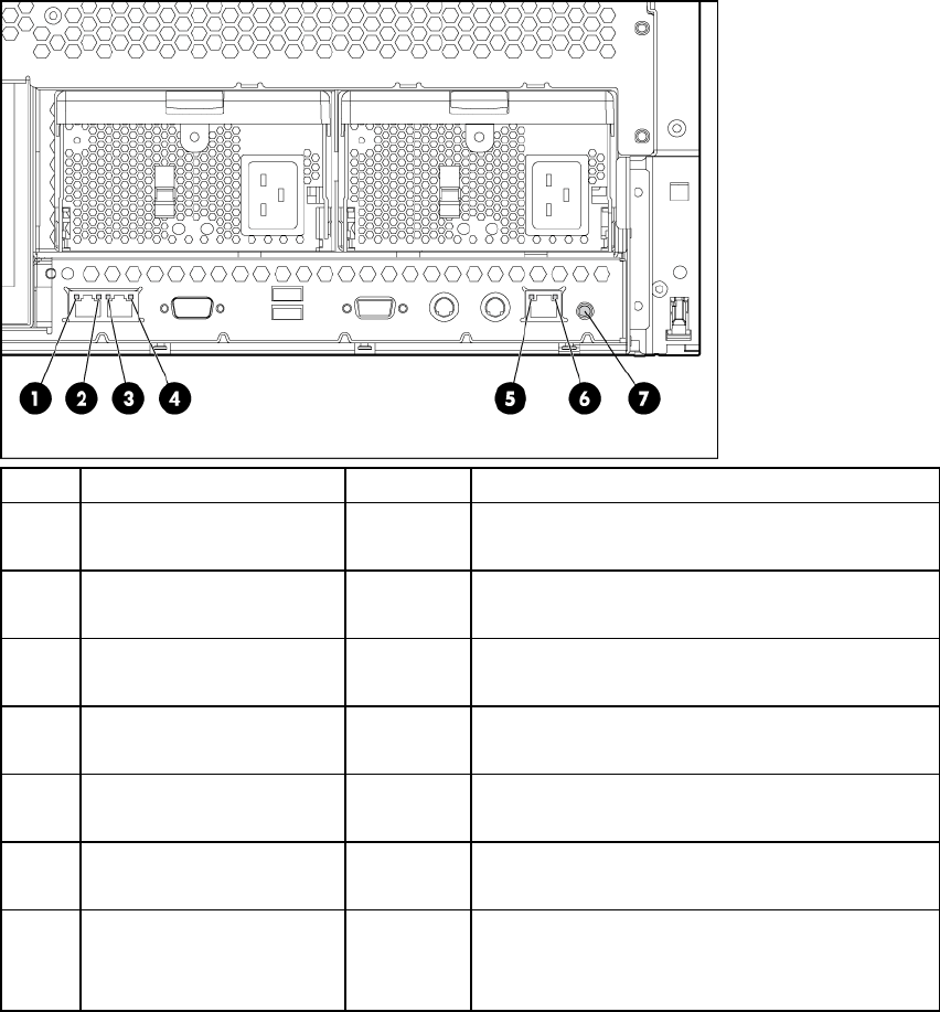 6 iLO NIC Link LED Green On = Linked to network
