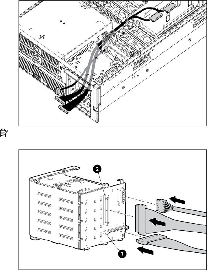 For ease of cabling, route the cables in the server before connecting the cables to the SAS hard drive