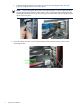IMPORTANT: Each retainer bracket needs to match the sag of each CMA and remain flush with its CMA in order to properly hold it in place during earthquakes. Otherwise the CMA can slip out from under the retainer and swing freely in the rear of the cabinet, damaging itself and other components in the rear of the cabinet. NOTE: Due to the sag of the CMA from the cable weight, there might be a gap between the CMA and the retainer bracket. To close the gap, press the retainer bracket down onto the CMA. 4. 5. 6.