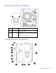 Rear panel LEDs and buttons Item Description Status 1 NIC link LED Solid green = Link exists Off = No link exists 2 NIC status LED Solid green = Link to network Flashing green (1 Hz/cycle per sec) = Network active Off = No network activity System board components Component identification 9
