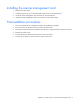 Installing the remote management card 1. Remove the access panel. 2. Carefully lay the server on its unexposed side to gain access to the system board. 3. Locate the remote management card connectors on the system board. 4. Install the remote management card in the connectors on the system board. Post-installation procedures 1. Be sure all components are installed according to the installation procedures. 2. Be sure you have not left any loose tools or parts inside the server. 3.