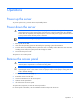 Removable media device option (ML110 G6 servers) This process only represents one installation method. For instructions for installing the media device into a specific server, see the installation sheet that ships with the server or the HP website (http://www.hp.com/go/bizsupport). To install the component: 1. Power down the server (on page 7). 2. Extend the server from the rack. 3. Remove the access panel (on page 7). 4. Remove the tower bezel ("Remove the tower bezel (ML110 G6 servers)" on page 8).