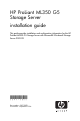 HP ProLiant ML350 G5 Storage Server installation guide This guide provides installation and configuration information for the HP ProLiant ML350 G5 Storage Server with Microsoft® Windows® Storage Server 2003 R2.