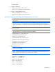 SKIPTARGET = NO SOURCEPATH = C:\fwcd\firmware-8.70-0\hp\swpackages [GROUPS] HOST=winserver UID=Userid PWD=password [END] Example 4 SILENT = YES IGNOREERRORS = ServerNotFound,BadPassword, FailedDepedencies SKIPTARGET = NO SOURCEPATH = C:\ fwcd\firmware-8.70-0\hp\swpackages FORCEALL = YES REBOOTALLOWED = YES REBOOTDELAY = 30 REBOOTMESSAGE = “Install complete, server will reboot in 30 seconds” [TARGETS] HOST=16.83.62.141 UID=Userid PWD=password [END] [TARGETS] HOST=16.83.61.