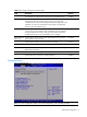 Table 4 Advanced menu fields Field Description CPU Configuration You can use this screen to select options for the CPU Configuration Settings. Use the up and down keys to select an item. Use the and keys to change the value of the selected option. A description of the selected item appears on the right side of the screen. The settings are described on the following pages. IDE Configuration You can use this screen to select options for the IDE Configuration Settings.