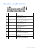 Chassis front panel LEDs and buttons Item Description Status 1 Power button/LED for node 2 Green = Node 2 is powered on. Amber = Node 2 is off and has standby power. Off = Node 2 has no power. 2 Health LED for node 2 3 Power button/LED for node 1 Green = Node 1 is powered on. Amber = Node 1 is off and has standby power. Off = Node 1 has no power. 4 Health LED for node 1 Green = Node 1 is operating normally. Amber = Non-critical error has occurred. Red = Critical error has occurred.