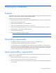 Contents Planning the installation ................................................................................................................. 5 Features ...................................................................................................................................................... 5 Grounding requirements ............................................................................................................................... 5 Space and airflow requirements ...............