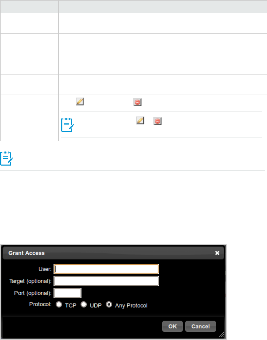 User Displays the name of the user to be granted access. Any displays when all