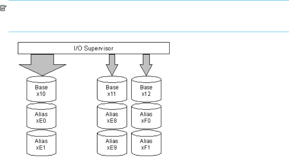 devices (x10, x11, and x12) was originally assigned two aliases. In this example, as I/O requests converge