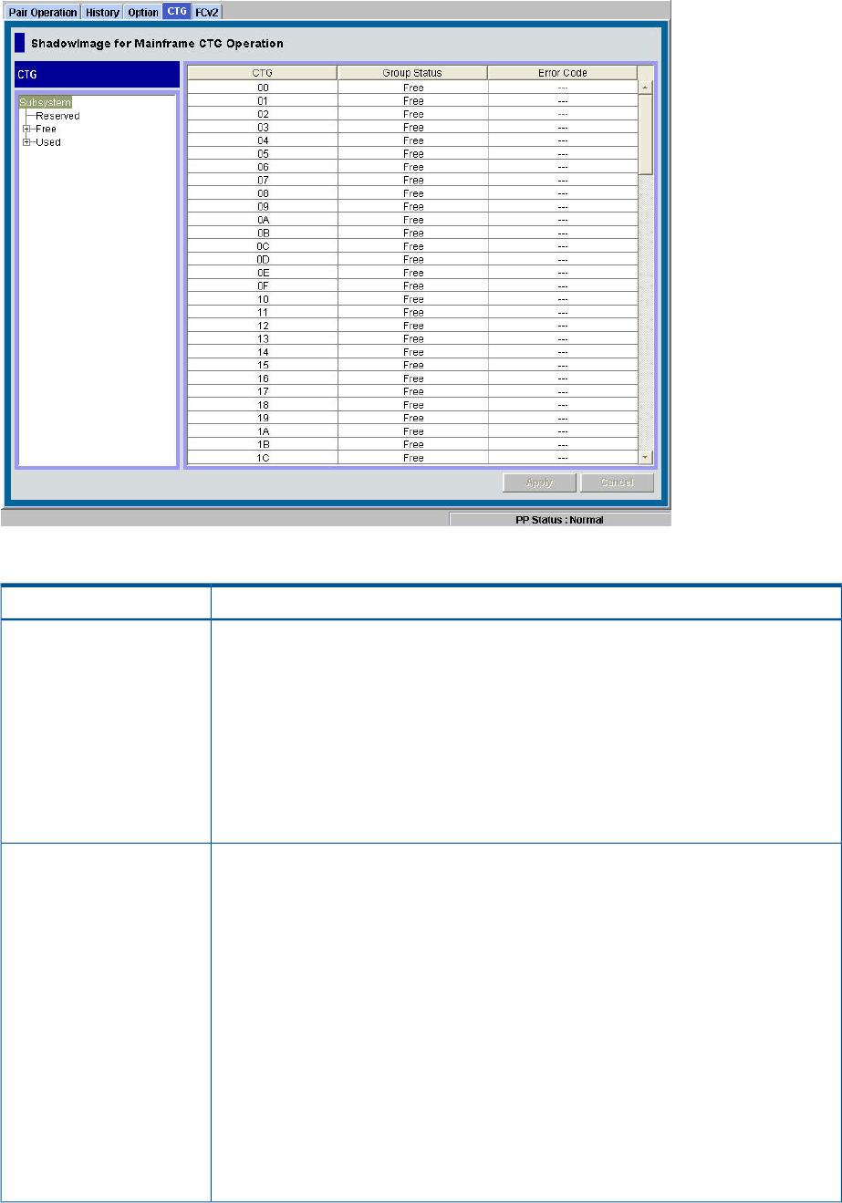 • Code: Displays the error code when a CTG operation fails to be applied to the XP