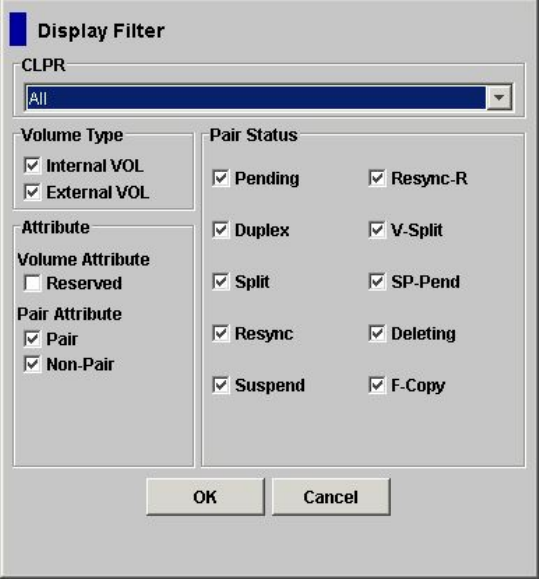 • The Pair Status box allows you to filter the pairs displayed in the Volume List by pair status.