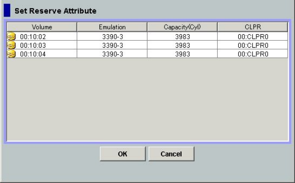 • The OK button allows you to set the reserve attribute for unreserved volumes.
