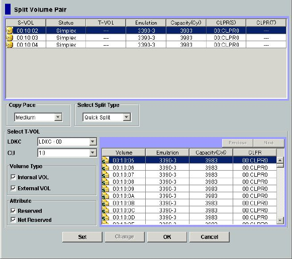 Figure 33 Split Volume Pair Dialog Box