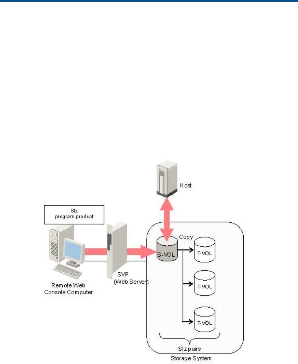 Figure 1 (page 8) shows a typical ShadowImage for Mainframe configuration using Remote Web