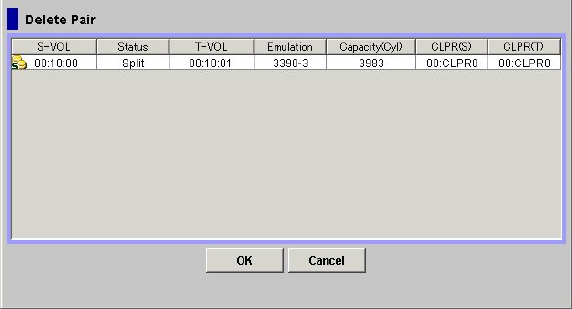 • The OK button adds the operation settings to delete the selected pairs displayed in the Delete