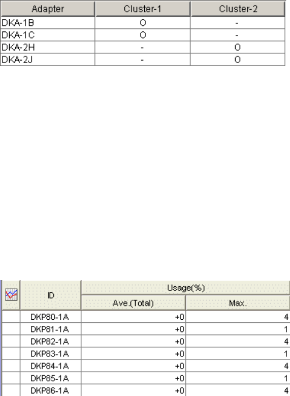 • Cluster-1: If the Cluster-1 column displays 0 and the Cluster-2 column displays a hyphen, the disk