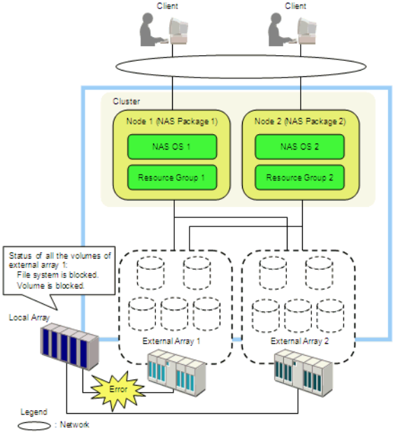 array. In Figure 62, an error occurs in the path between the local array and external array 1; however,