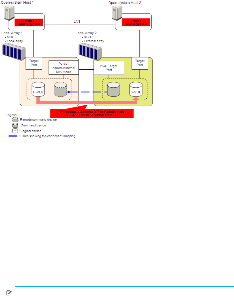 Figure 67 Using Continuous Access XP or Continuous Access XP Journal with remote command devices