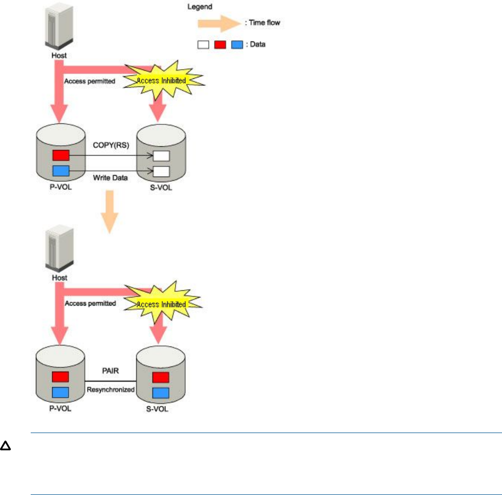 volume to be recognized by the host. The data on the P-VOL is not guaranteed until the reverse