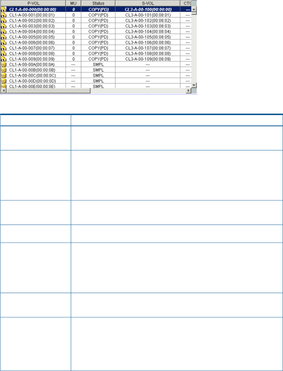 The status of the S-VOL. For details about what displays in this item if you select XP