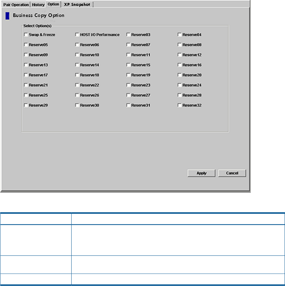 Applies the XP Business Copy options checked in the Select Option(s) box to the storage