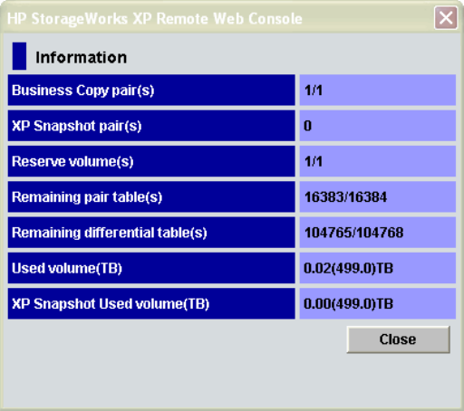 The number of XP Business Copy pairs displays in the format of XXXX/YYYY. XXXX indicates