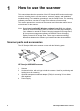 1 How to use the scanner This manual describes the operation of the HP Scanjet 4600 series see-through scanner, including how to use the scanner, customer support, and installation troubleshooting. For installation procedures, see the Setup Poster. For scanning software procedures, see the HP Image Zone software on-screen help. This section presents an overview of the scanner and information about how to use and care for the scanner.