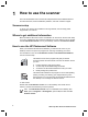 1 Kako koristiti skener Ovaj priručnik opisuje kako koristiti plošni skener za dokumente HP Scanjet 8270 i njegove dodatke, riješiti probleme s instalacijom i obratiti se podršci za korisnike. Postavljanje skenera Za postavljanje skenera i instaliranje softvera za skeniranje pogledajte poster za postavljanje koji je isporučen sa skenerom. Gdje pronaći dodatne informacije Više informacija o skeneru i softveru možete pronaći u zaslonskoj pomoći.