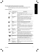 Front panel and accessories overview English This section presents an overview of the scanner front panel, the transparent materials adapter (TMA), and the automatic document feeder (ADF). Front panel buttons Icon Feature name Description Power Save button Turns Power Save mode on or off. Destination button Selects the destination (an application, such as a word processor) for a scanned document. The destination is displayed in the front panel display.