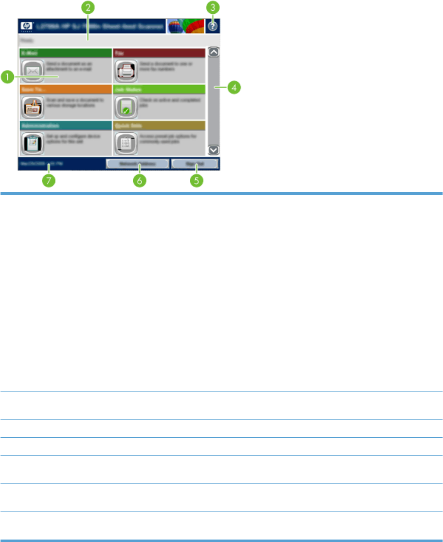 5 Sign In/Sign Out Touch this button to sign in or sign out of the product. After you sign out, the product restores