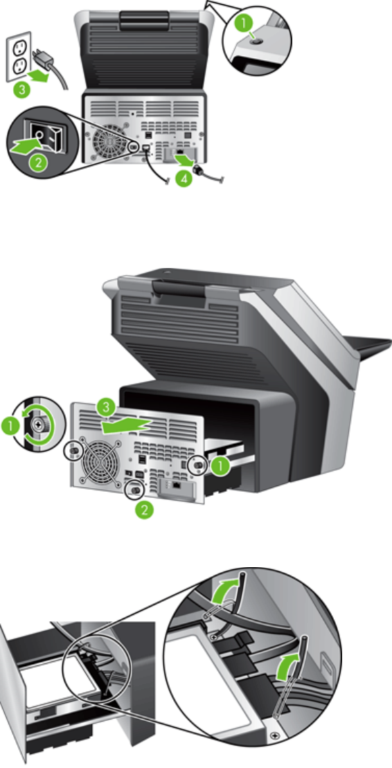 2. Loosen the three screws which secure the back panel drawer to the product, and then slide the